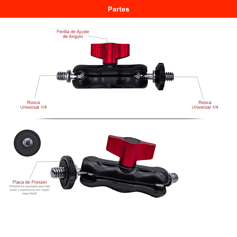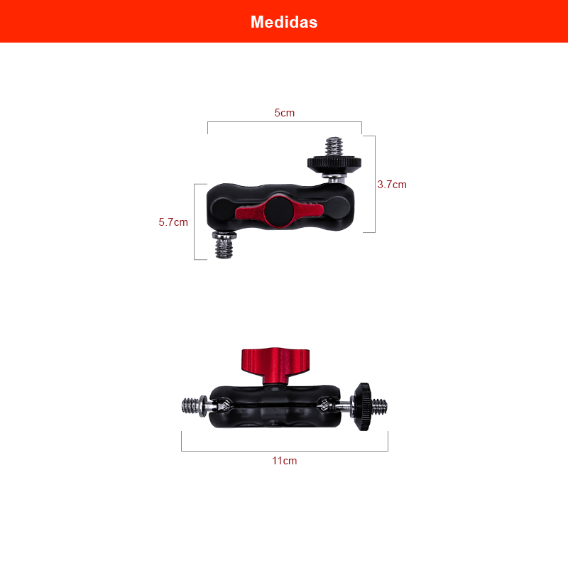 El Brazo Mágico COMAN WD2 es un soporte articulado compacto diseñado para montar accesorios en cámaras, trípodes, rigs o jaulas de cámara. Su tamaño reducido lo convierte en una excelente opción para configuraciones ligeras, permitiendo colocar monitores, luces LED, micrófonos o adaptadores de celular con gran facilidad.