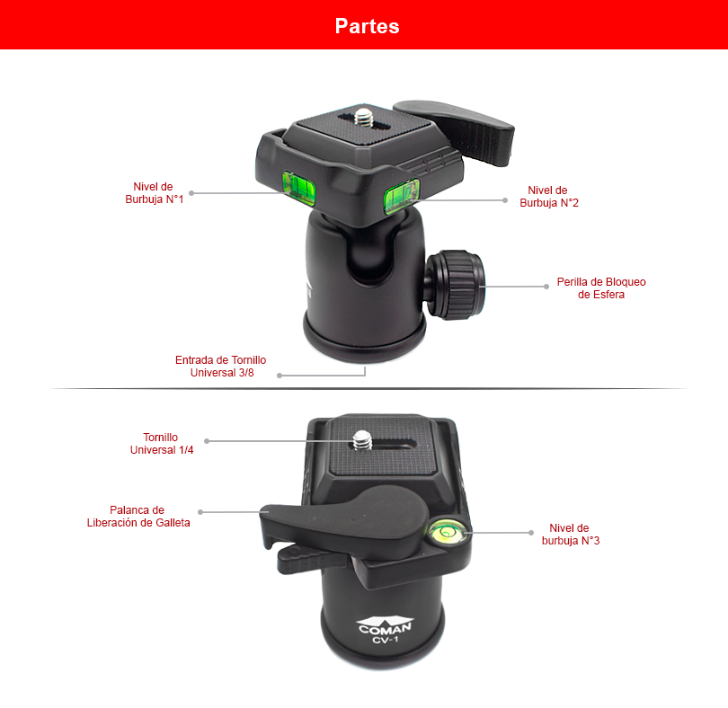 – Rosca universal 1/4: Compatible con cámara, filmadora, webcam, Gopro, sujetador de celular, etc.