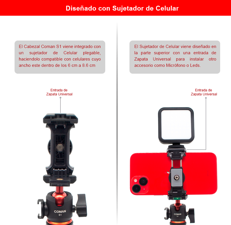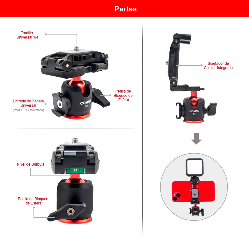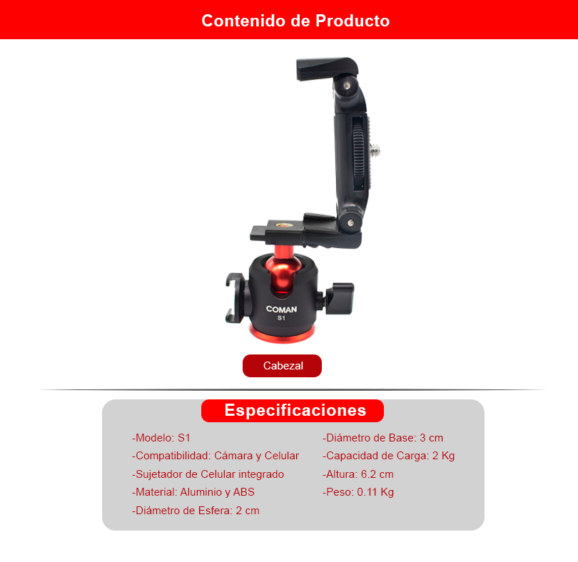 Cabezal de Bola S1 (Cámara y Celular)