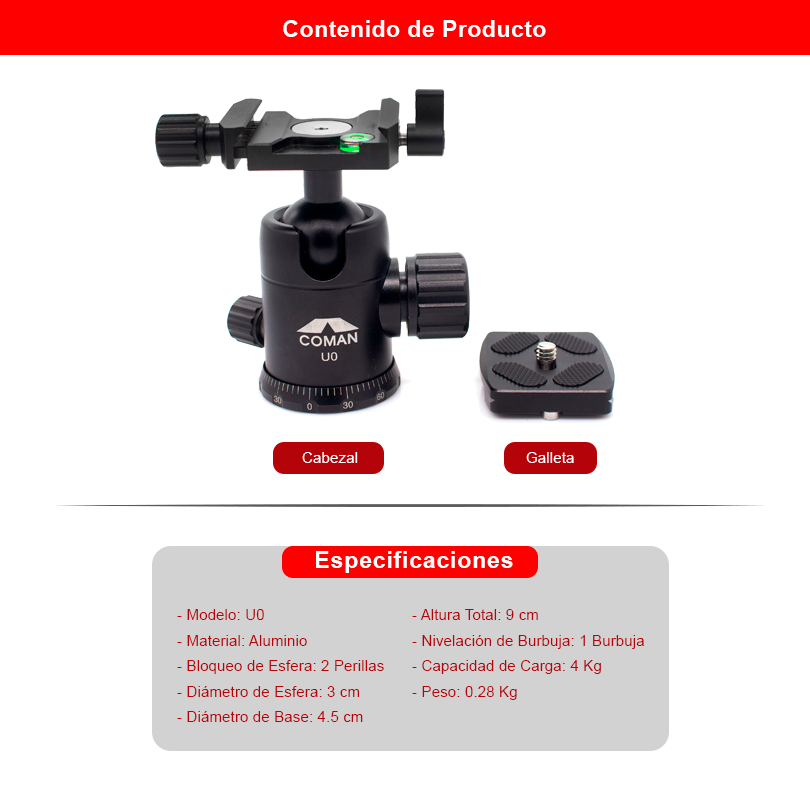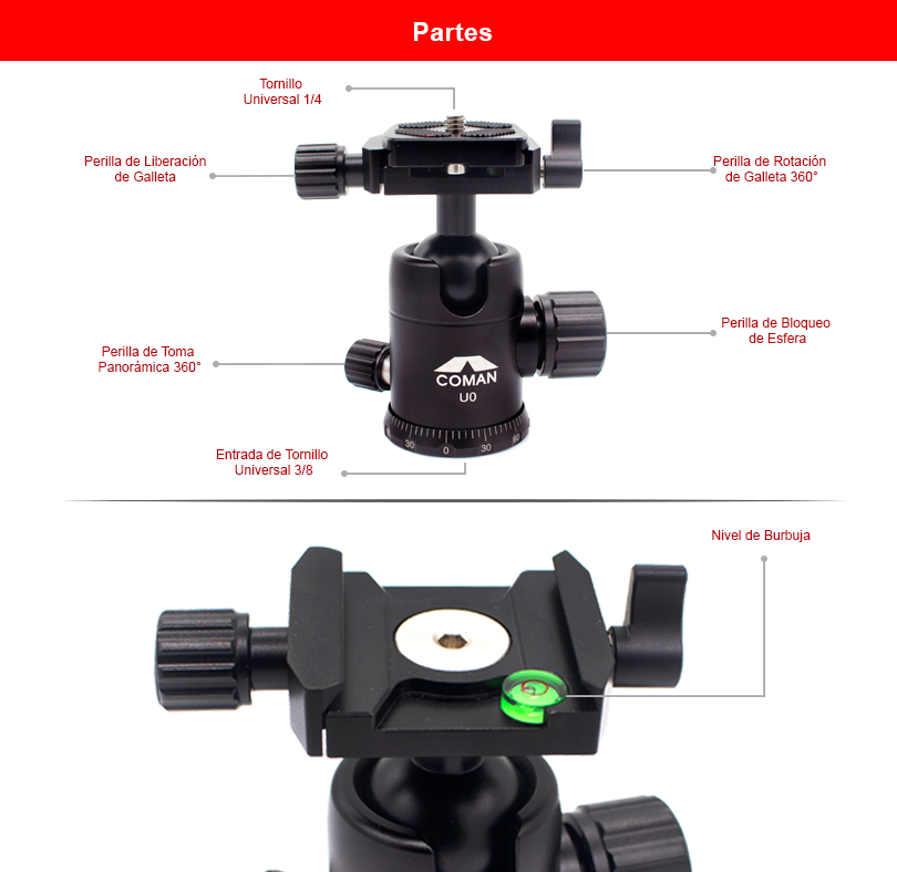– Rosca universal 1/4: Compatible con cámara, filmadora, webcam, Gopro, sujetador de celular, etc.