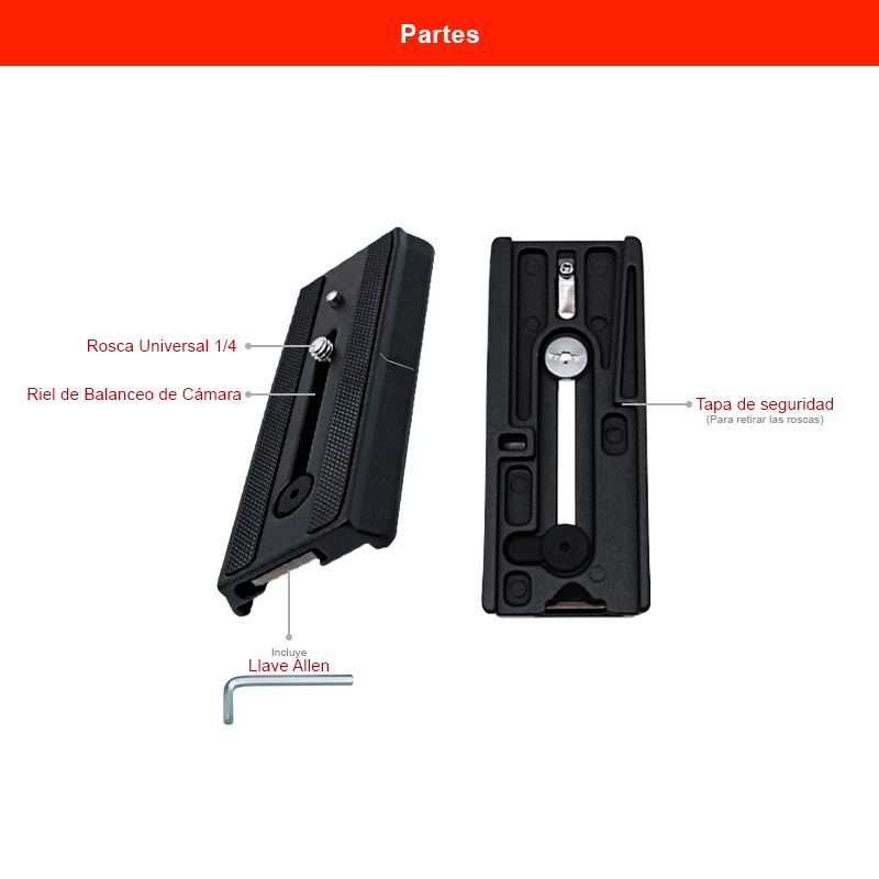 Fabricada en aluminio de alta resistencia, esta placa ofrece una excelente combinación entre durabilidad y ligereza, ideal para fotógrafos y videógrafos que requieren un sistema confiable para trabajar con cámaras DSLR, mirrorless o equipos de video.