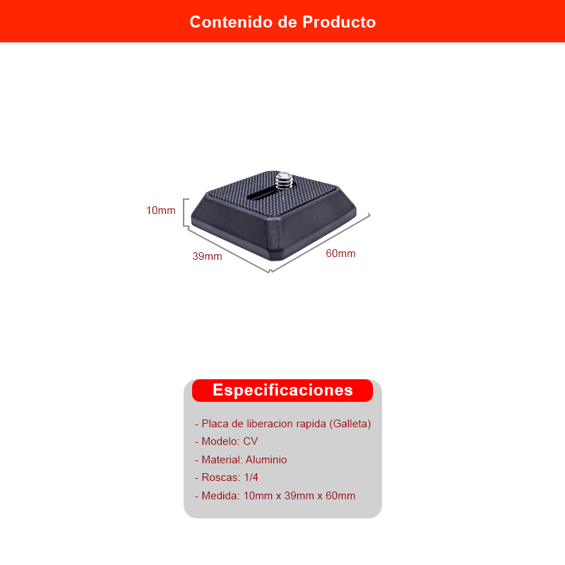 • Tipo: Placa de liberación rápida (Galleta)
