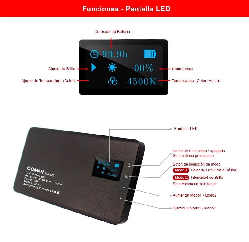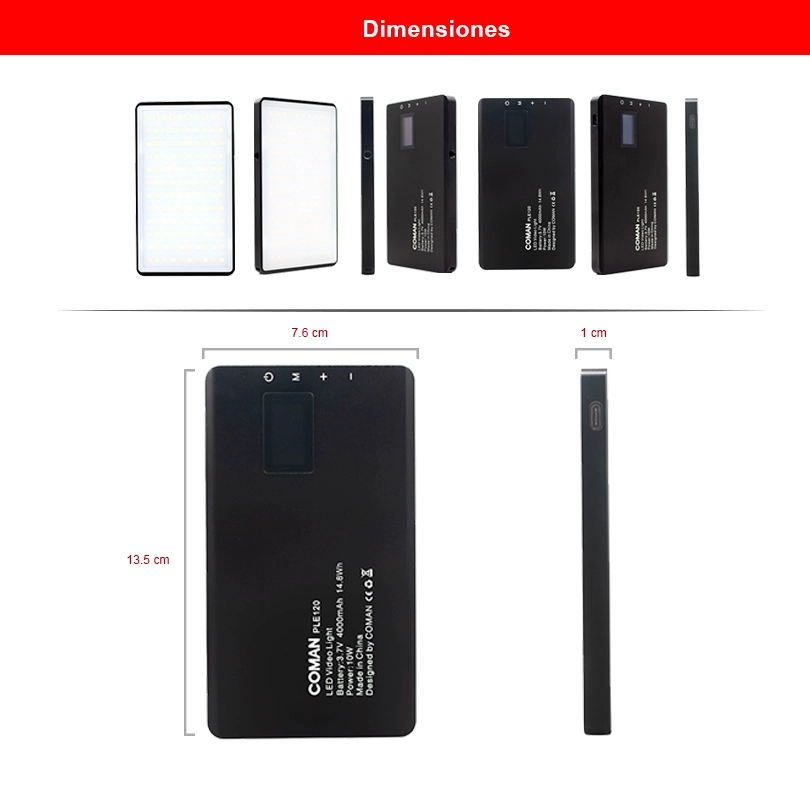 • Batería recargable: 3.7V – 4000mAh