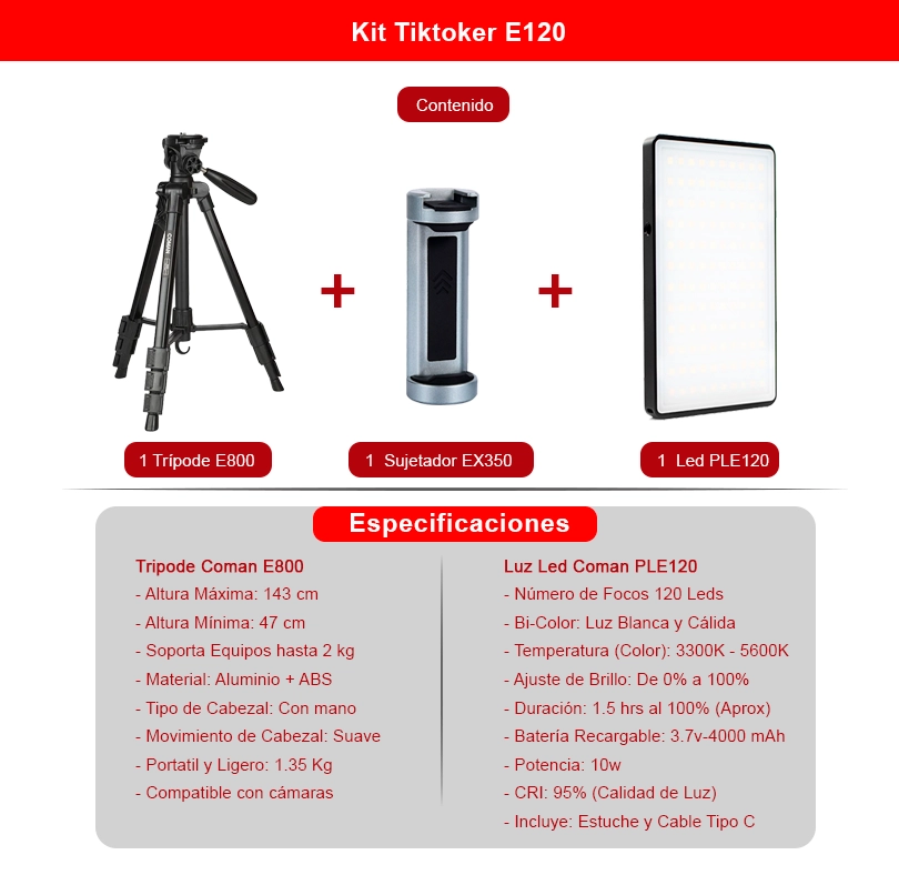 Kit Tiktoker E120 (Trípode + Led)