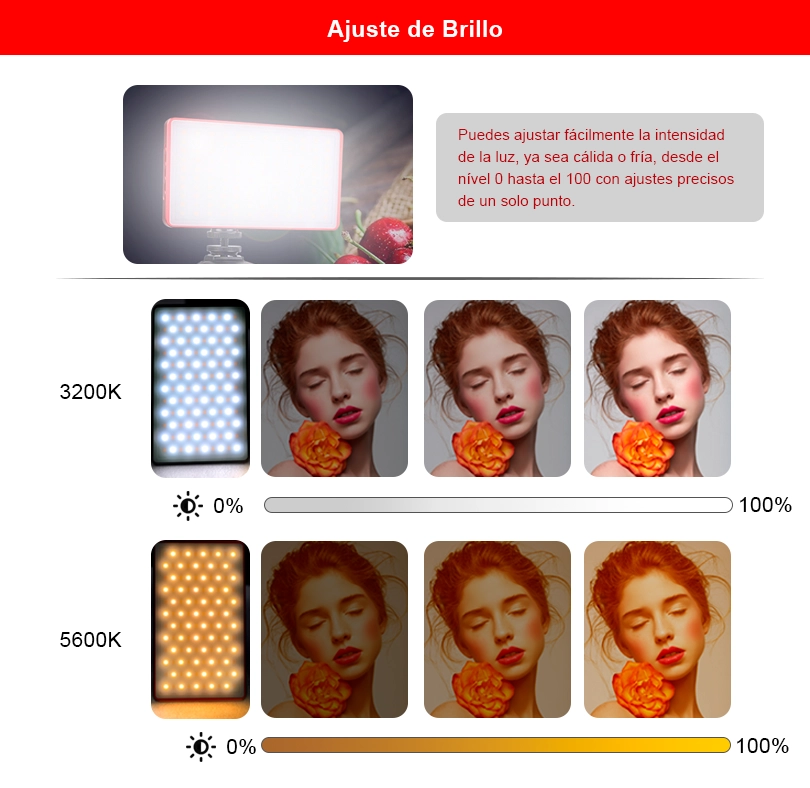 • Ajuste de brillo: 0 a 100%