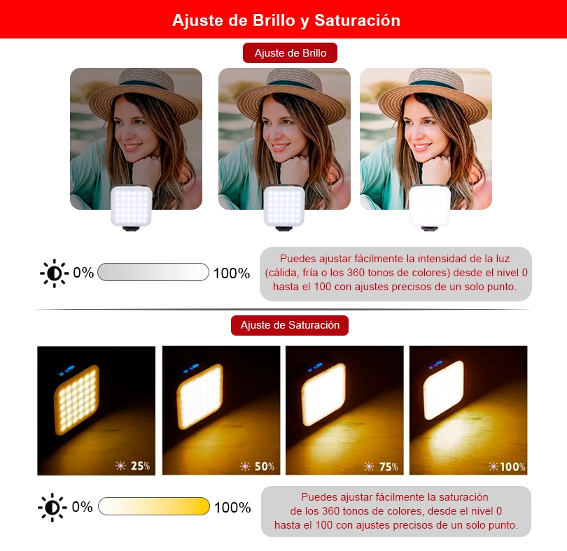 El led PLE59 ofrece un excepcional control de la intensidad lumínica, permitiendo ajustes precisos en cada una de sus funciones. Desde la luz Bi-Color hasta los 360 tonos de colores y los 24 efectos especiales, este modelo destaca por su versatilidad en el manejo del brillo. La capacidad de regular la intensidad desde un 0% hasta un nivel óptimo del 100% garantiza un ajuste milimétrico, ofreciendo la luminosidad exacta requerida para cada función. Esta característica se convierte en un aliado esencial para trabajos que demandan una precisión meticulosa en el control de la iluminación, permitiendo una ejecución impecable en cualquier ámbito creativo o profesional.