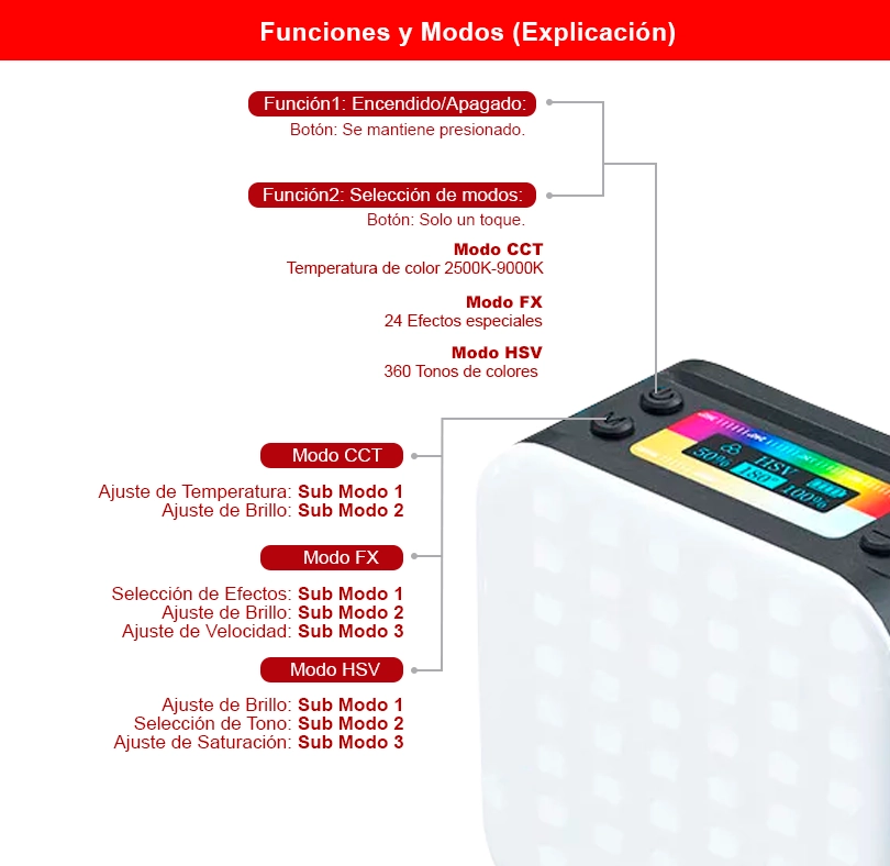 MODO CCT: LUZ Bi-COLOR (FRÍA y CÁLIDA)