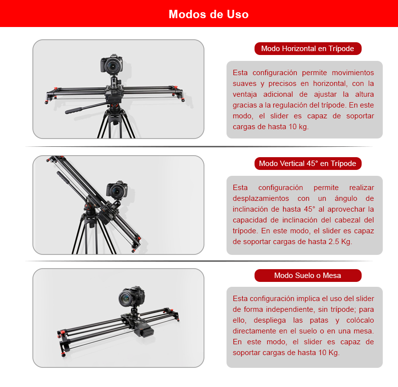 • Capacidad de carga: 10 Kg (Modo horizontal)