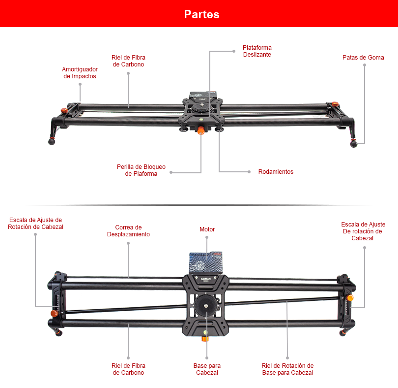 – Rosca 1/4 y 3/8 para trípodes o parantes